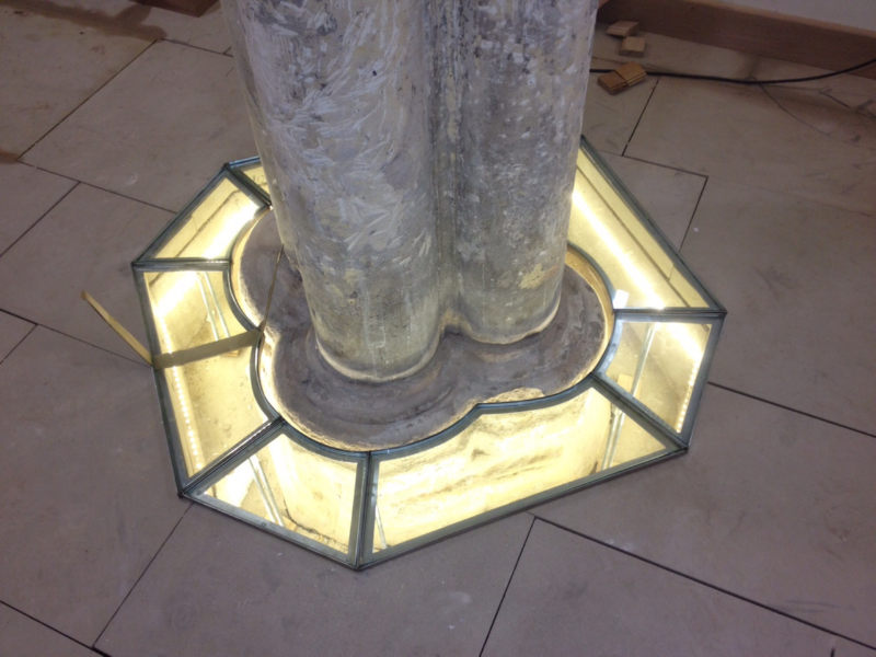 Using specialist equipment, we can sandblast the glass to create an anti-slip surface, such as chequer plate flooring, as well as creating effects on the surface of the glass, from simple frosting to elaborate and detailed designs.
