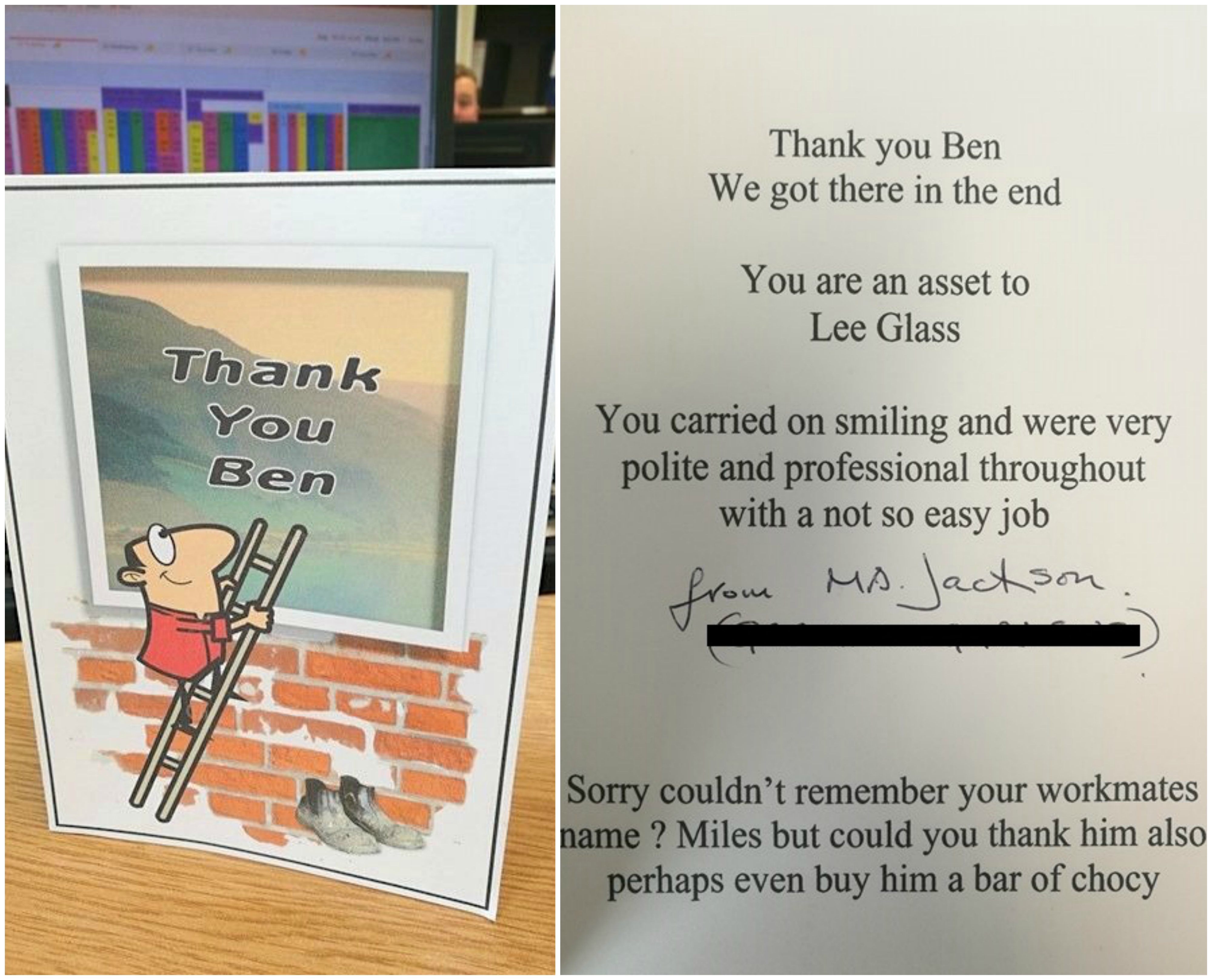 Thank you Ben, we got there in the end. You are an asset to Lee Glass.