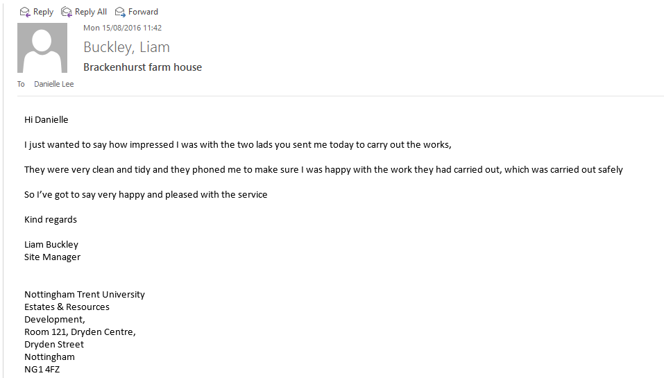 I just wanted to say how impressed I was with the two young lads you sent me today to carry out the works.