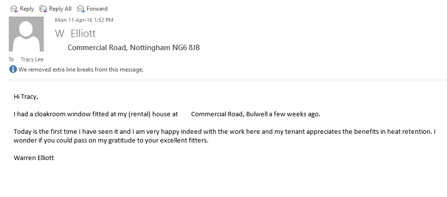 I had a cloakroom window fitted at my (rental) house at Commercial Road, Bulwell a few weeks ago.